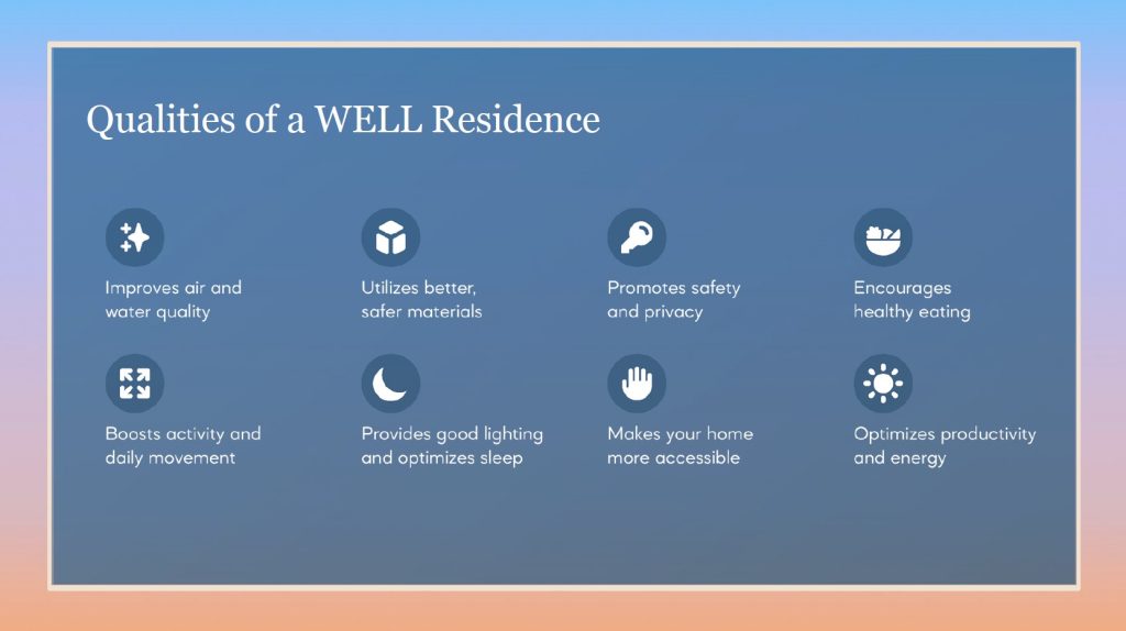 A WELL Residence a nemzetközi WELL minősítési rendszer legújabb, lakóépületekre szabott változata, amelyet az International WELL Building Institute (IWBI) fejlesztett ki. A minősítés célja, hogy átformálja azt, ahogyan az otthonokat tervezzük, építjük és üzemeltetjük – mindezt az emberi egészség és jóllét támogatása érdekében.